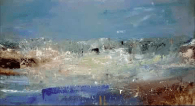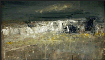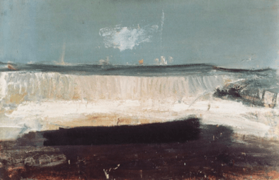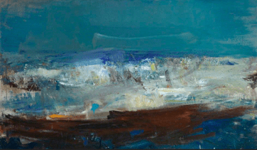 During her last years, artist Joan Eardley (1921-1963) painted seascapes at Catterline, a fishing village on Scotland’s coast. I especially like her The Wave (1961), Seascape (Foam and Sky, 1962), and Summer Sea (1962). What intrigues are the recurring smudges of light and cloud—center or just off center, at or above the horizon. (In other paintings, her glimmers are recognizably moon, sun, blue sky, or sea-spray.)